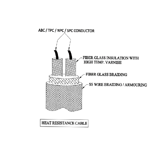 Depending on customer individual temperature limit we offer wide range of heat resistance cable with variety of insulation such as Silicon / Kapton / PTFE / FEP/ Fiber Glass etc. Heat resistance cables are mainly used in glass, steel & Iron, Cement, Rolling mill & Ceramic factories.